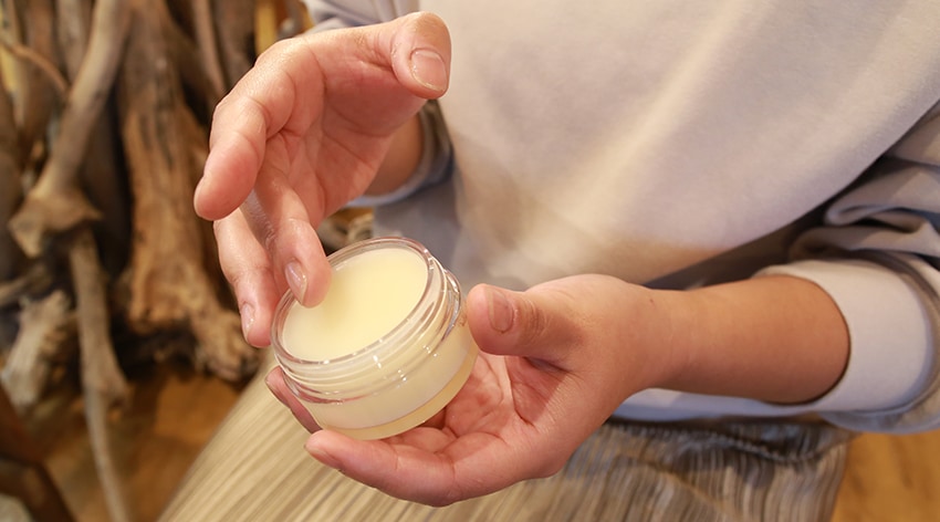 天然成分なので、夏場には柔らかくなり冬場には硬めになりますが、お肌の温度で柔らかく溶けて肌に馴染みます。